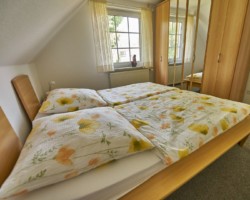 Schlafzimmer: je 2 Betten, verstellbare Lattenroste (2,00 x 1,00 m), großer Kleiderschrank.